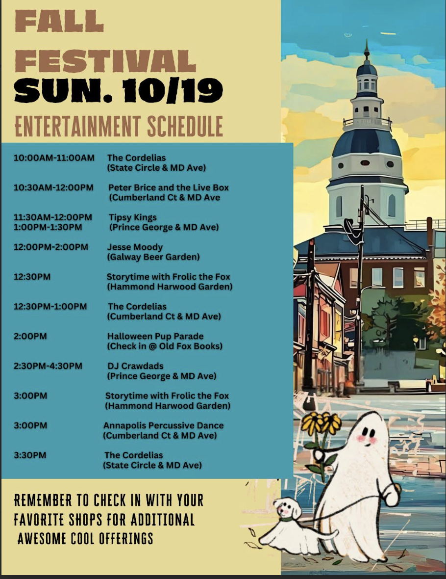 Our Fall Festival is one of the longest-running in our state! Our festivals take place on the first two blocks of Maryland Avenue between State Circle and Cumberland Court.